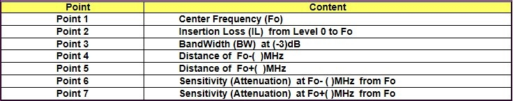 (3). The basic spec point of bandpass filter has 5 point as bellow.